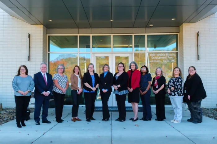 The West Virginia Housing Development Fund multifamily team stands together outside the office, reflecting a collaborative and professional group.